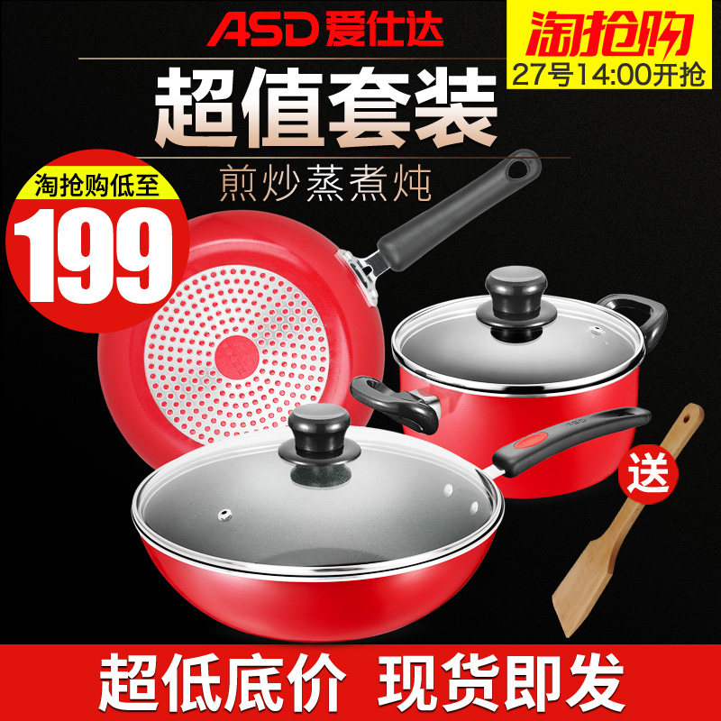爱仕达套装锅具 厨具不粘锅炒锅蒸锅电磁炉三件套