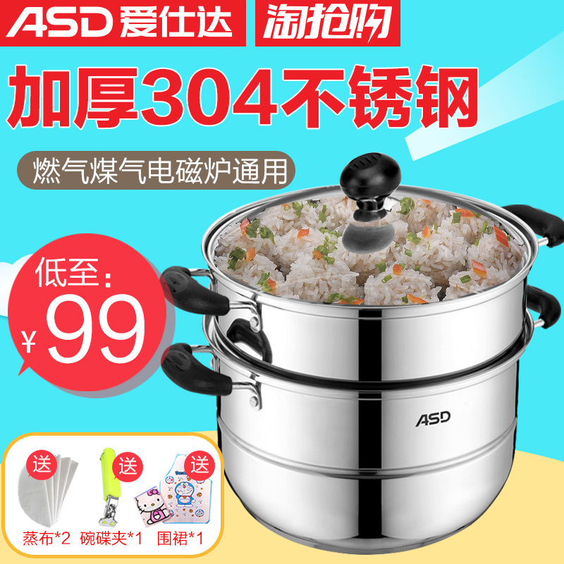 爱仕达蒸锅304不锈钢三层加厚2层