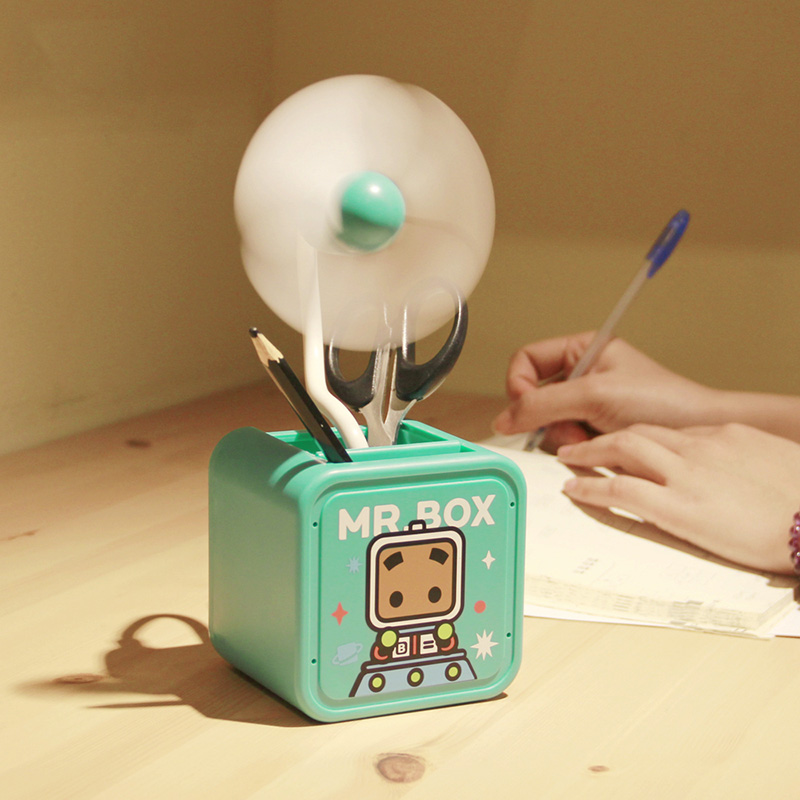 张小盒风扇清凉来袭,呆萌宇航员形象,风速大噪音小~可伸缩可调节角度,可用usb充电、5号电池通用方便哦~