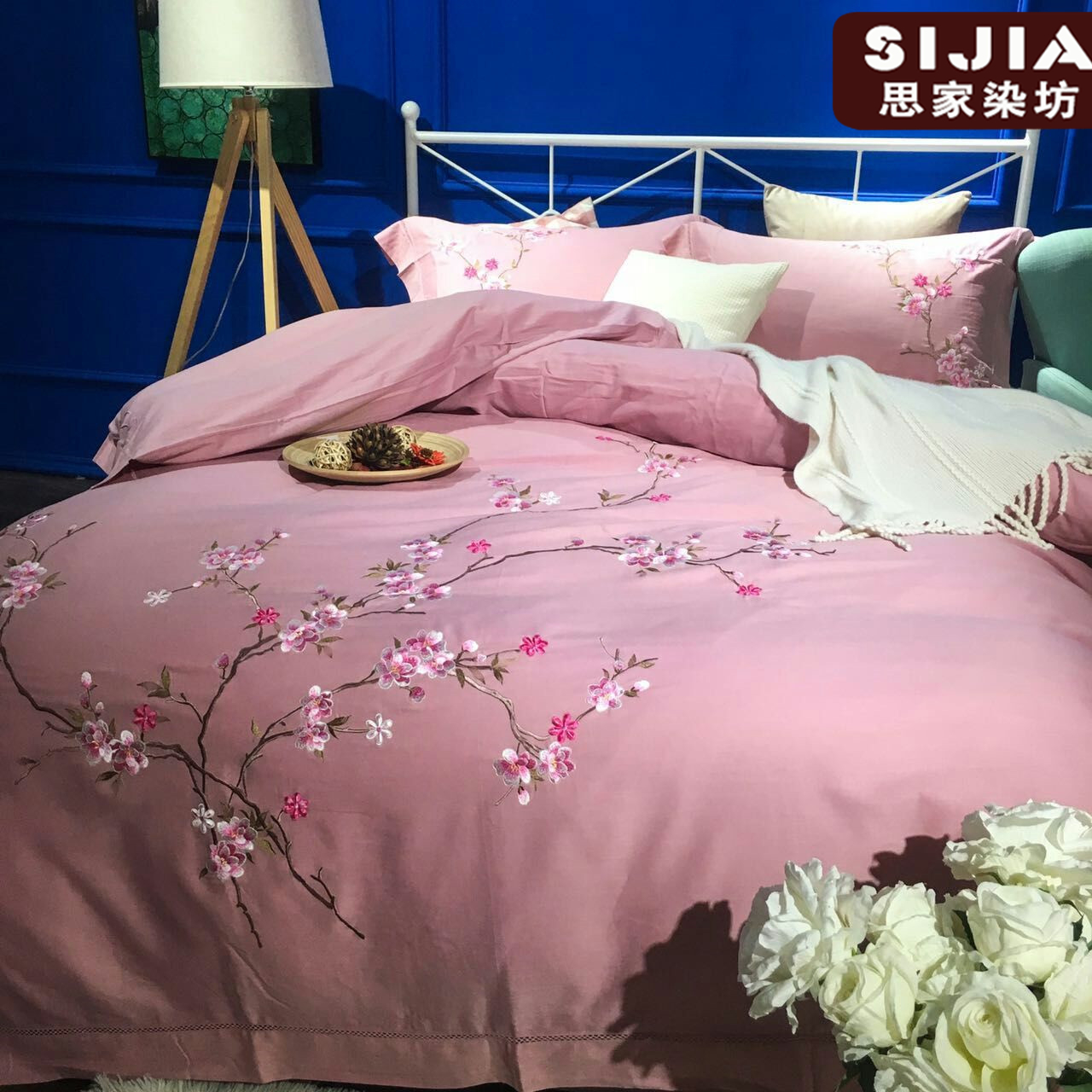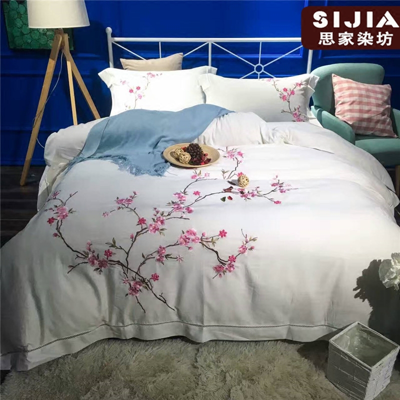 中国风设计,精致刺绣工艺,天丝棉麻四件套,47%天丝+45%全棉+8%优质麻, 区别于国产棉麻,工艺