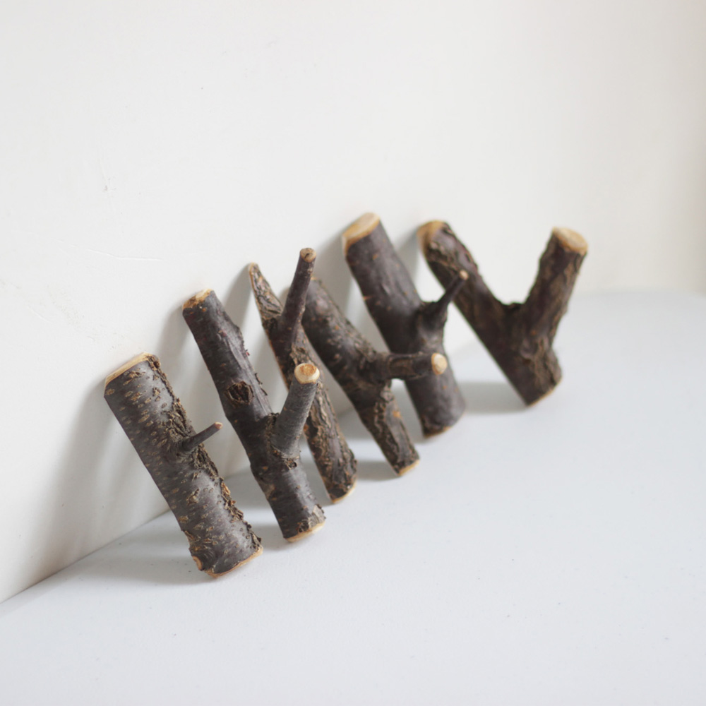 野生山杏木强度大,不易掉皮,多道工序处理后木性稳定。选用正品进口高强度3M背胶,依木形裁剪,黏贴面积比一般挂钩要大很多,因此黏着更加牢固。天然树枝形态各异,分叉粗细不等长短不一,同一订单会尽量挑选同一长度的。分叉不管粗细都可保证承重2.5公斤。