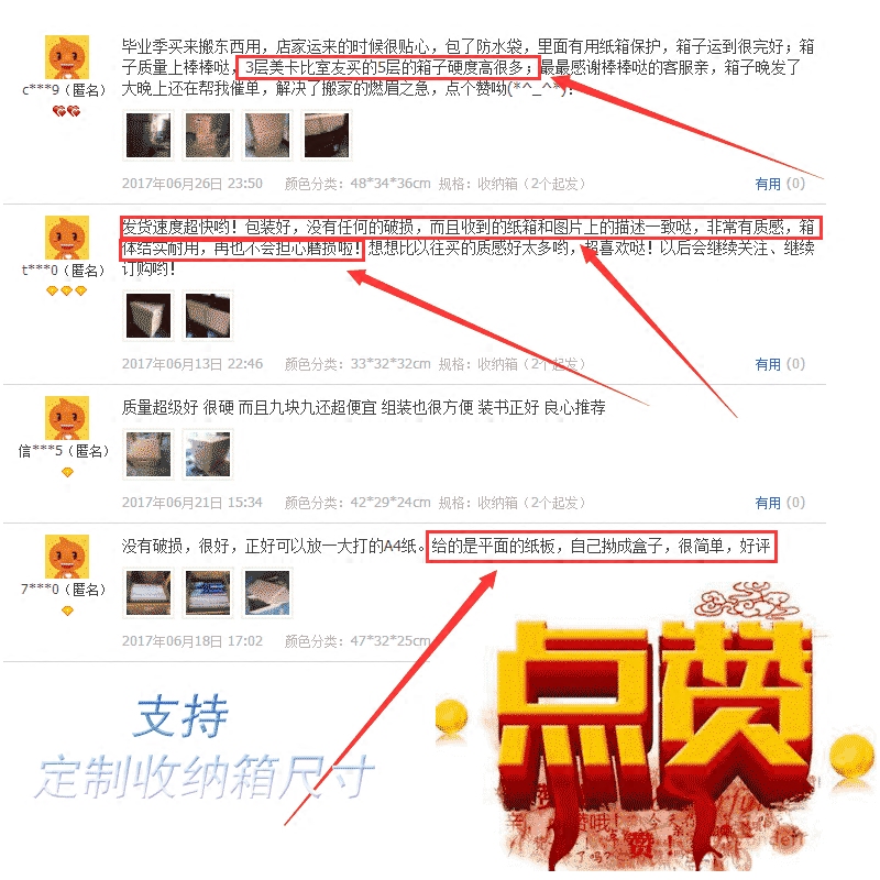 为增加称重 方便搬运 配有白色塑料手扣 环保美卡纸 居家环保储物收纳箱 方便 实用 无异味