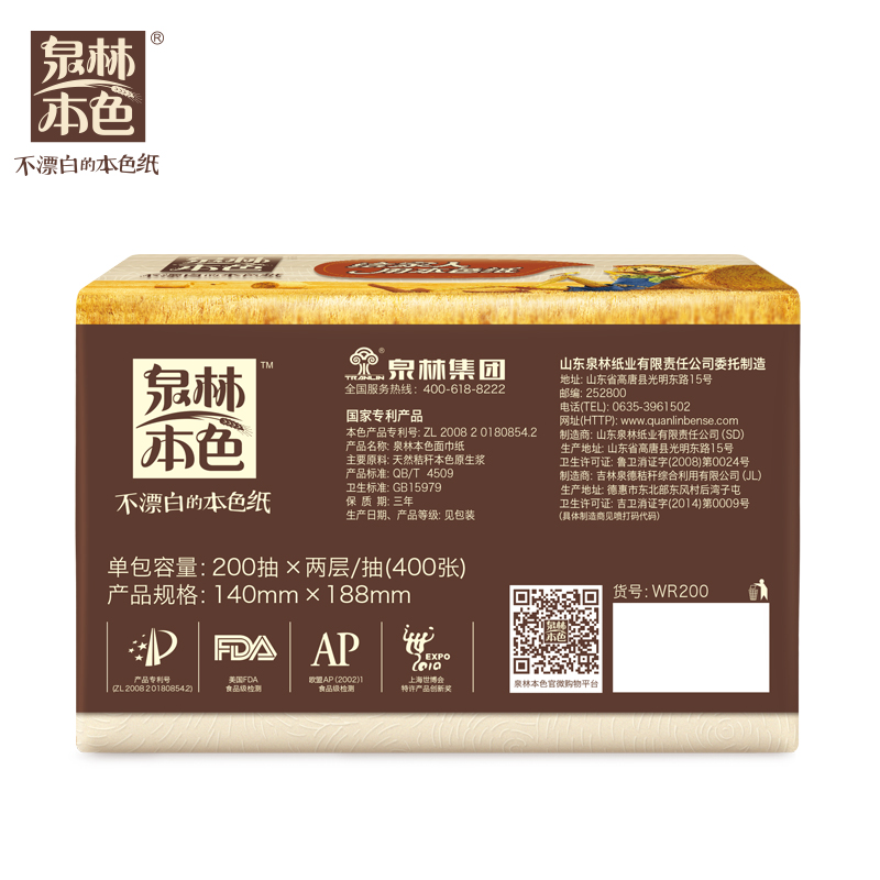 泉林本色抽纸官方旗舰店正品面巾纸餐巾纸200抽*15包箱装,泉林本色不漂白0添加健康生活用纸