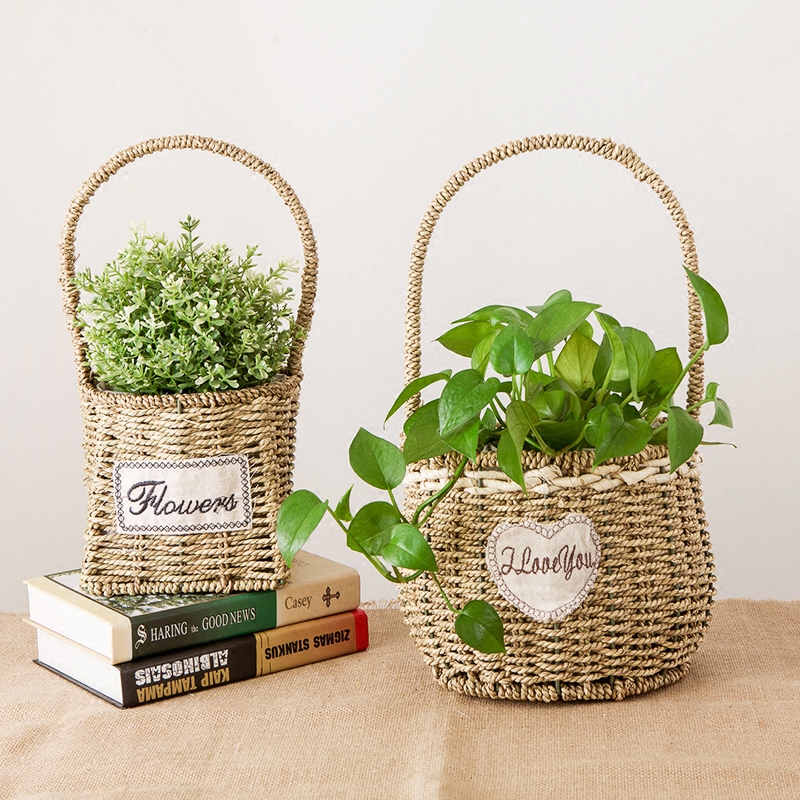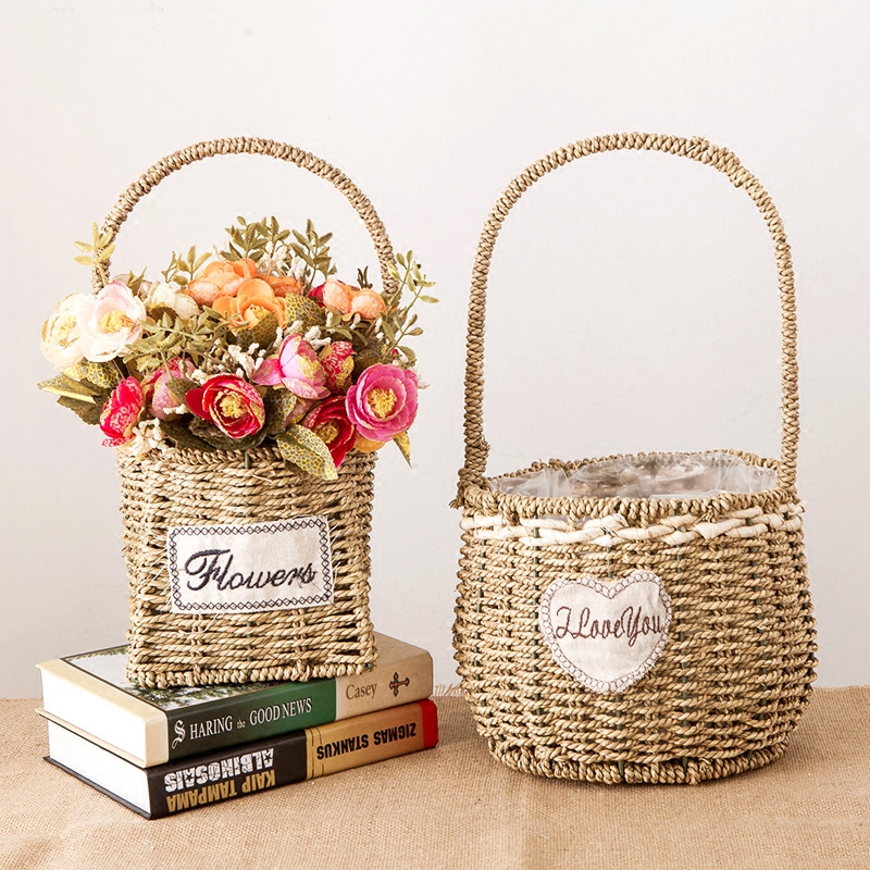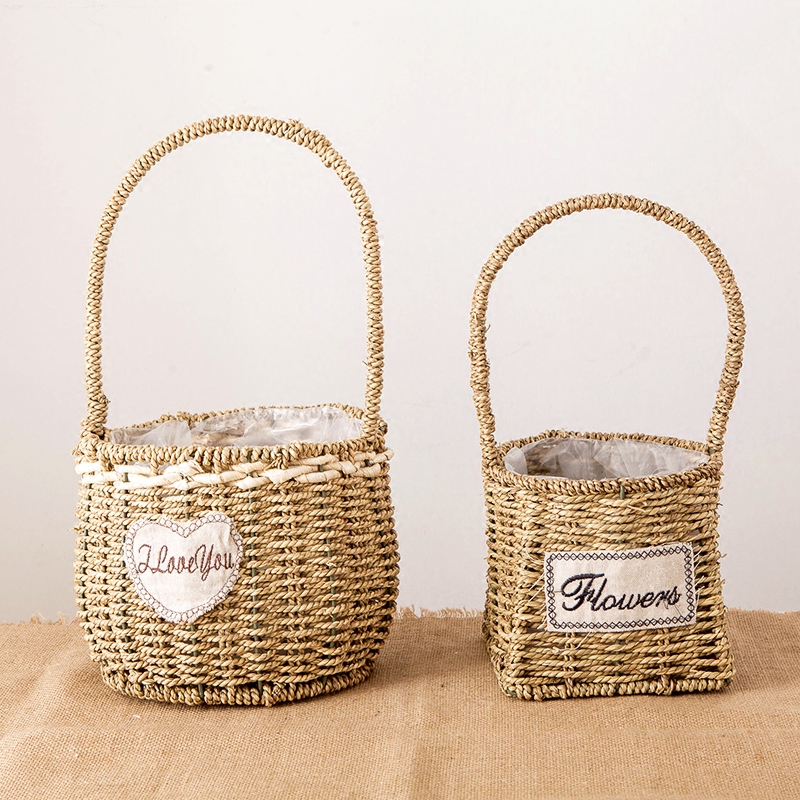 韩式手工藤编篮子 圆形篮子尺寸:口直径17cm 底部高14cm 整体高31cm 方形篮子:口直径17cm底部高16cm整体高34cm