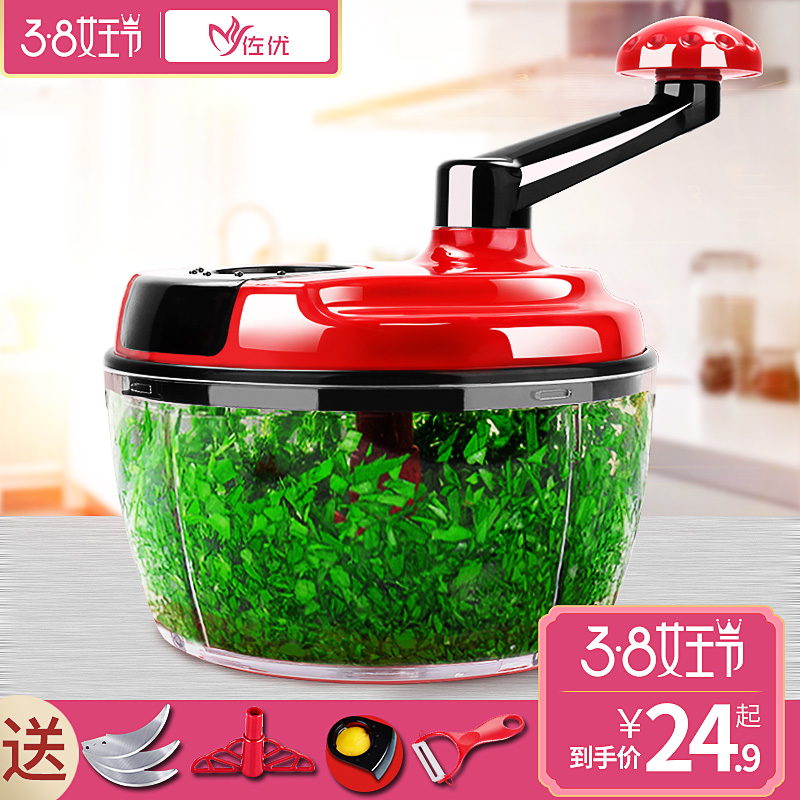 Top 6. 绞肉碎菜,料理助手,5大功能,集于一身,不锈钢刀片,摇杆齿轮设计,省力耐用,加厚玻璃碗,美味看得见。
