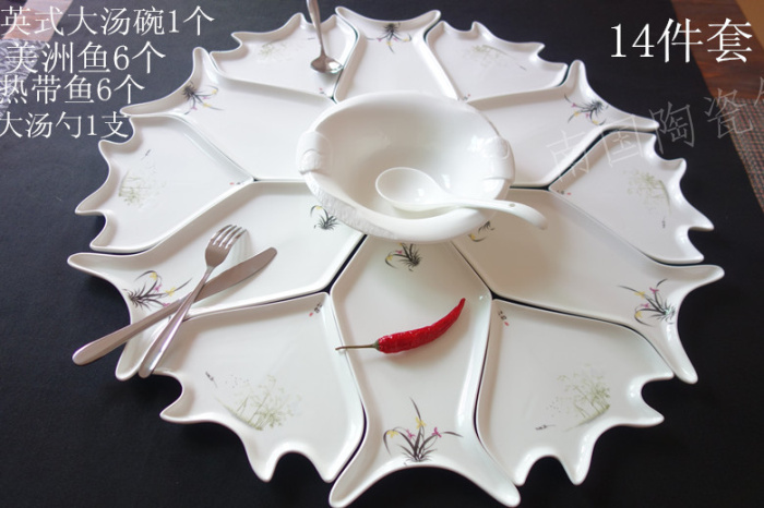 组合造型新颖,瓷质细腻,白度柔和、透光性强,呈现出与普通瓷器不一样的质感和亮度,浑身散发着贵族的高贵气质.高温镁质瓷。
