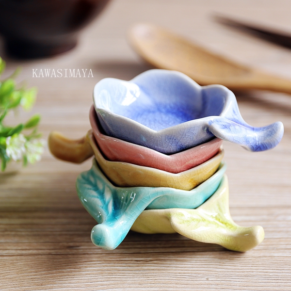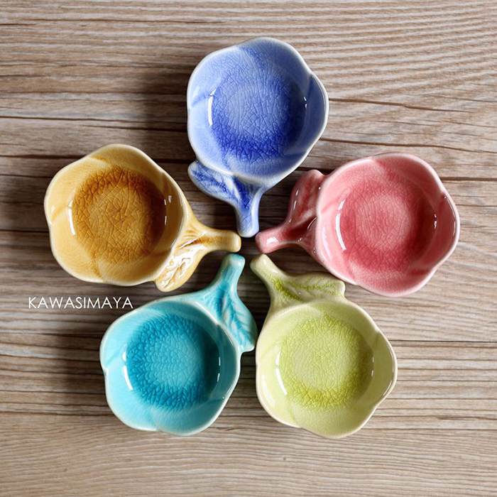花朵的优雅形态,清新的缤纷糖果色彩,独特的冰裂纹装饰,让配角也变得光彩夺目,让吃饭也变成一种艺术~巧妙的设计,花柄就是一个漂亮的筷架哦~