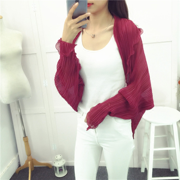 包邮,夏天灰常防晒实用,带袖口设计,舒适百搭,优雅的波浪花边,褶皱纹设计,让我们这个夏日又美又白~